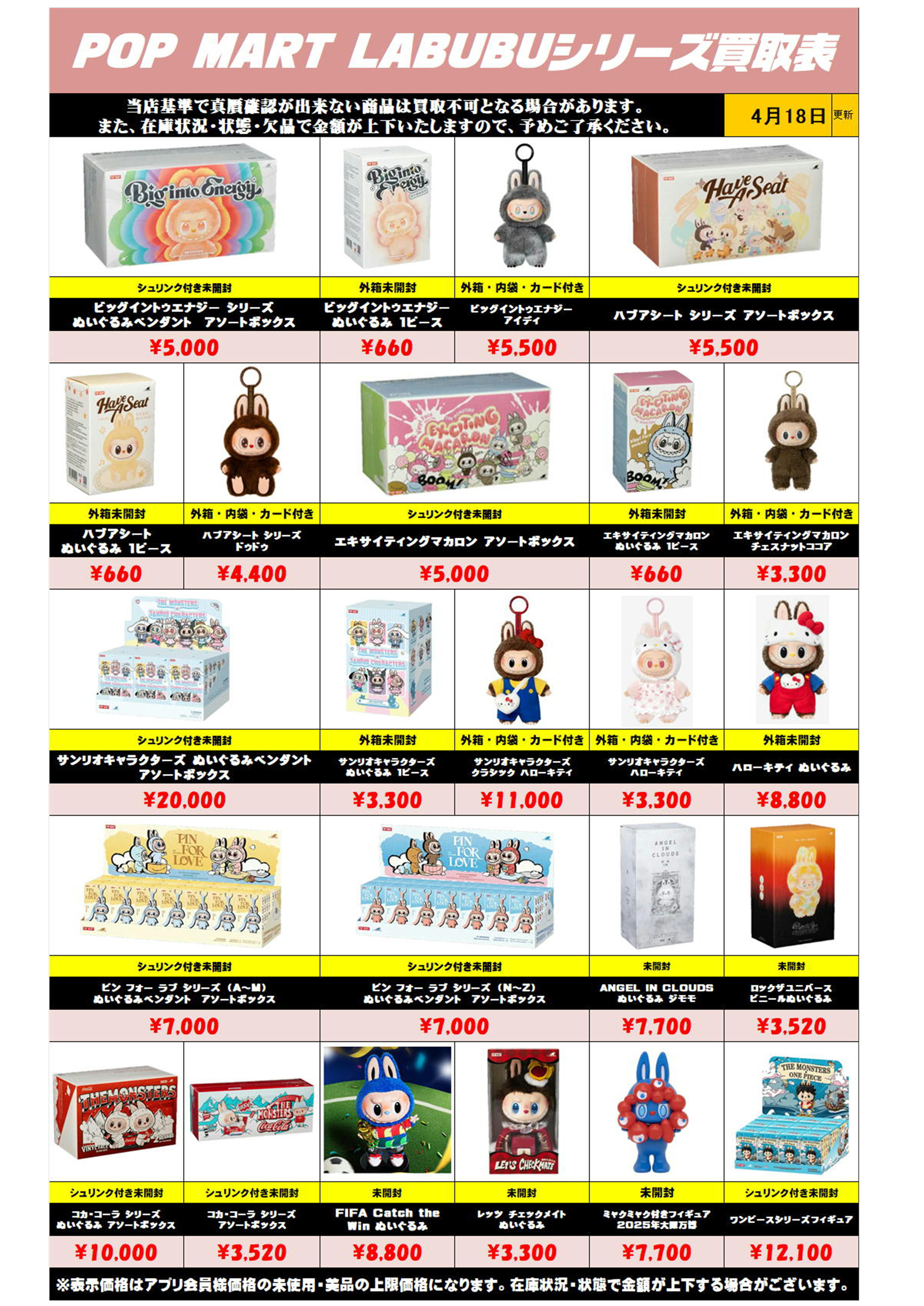ラブブシリーズ 買取リスト更新しました! 4/18~