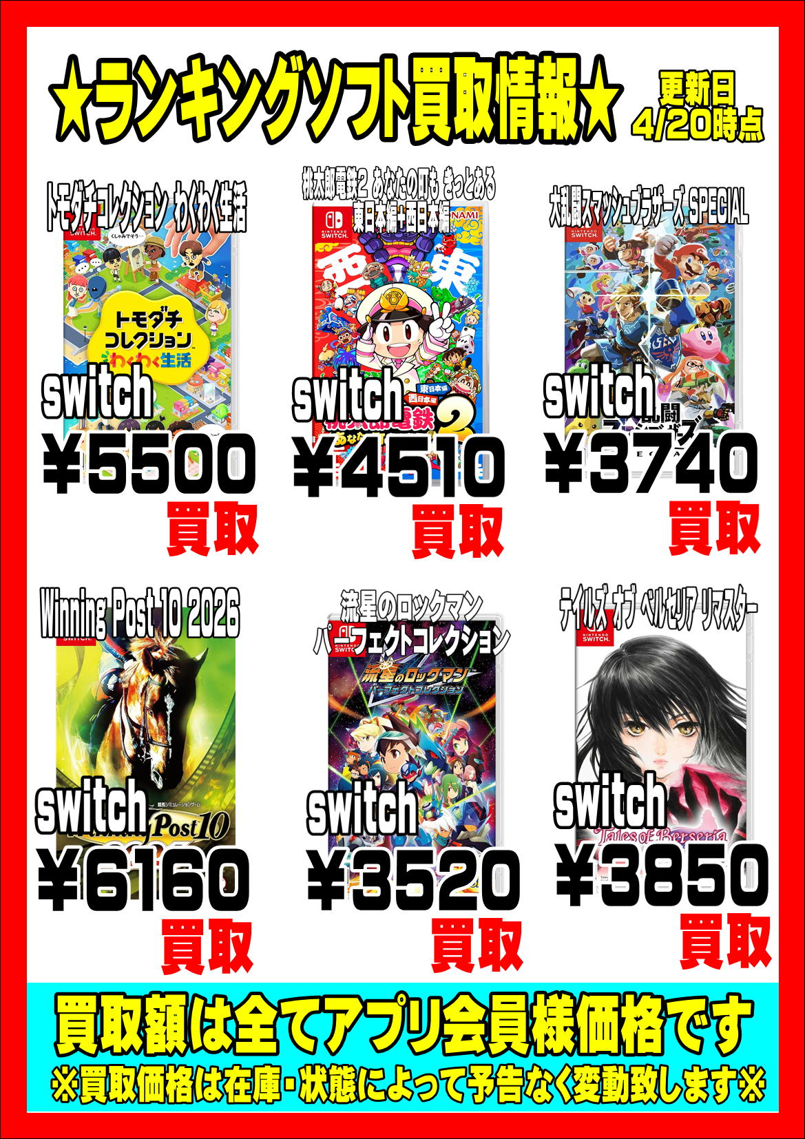 ※在庫、相場によって買取価格は予告なく変動します。最新の価格は買取所でご確認ください。