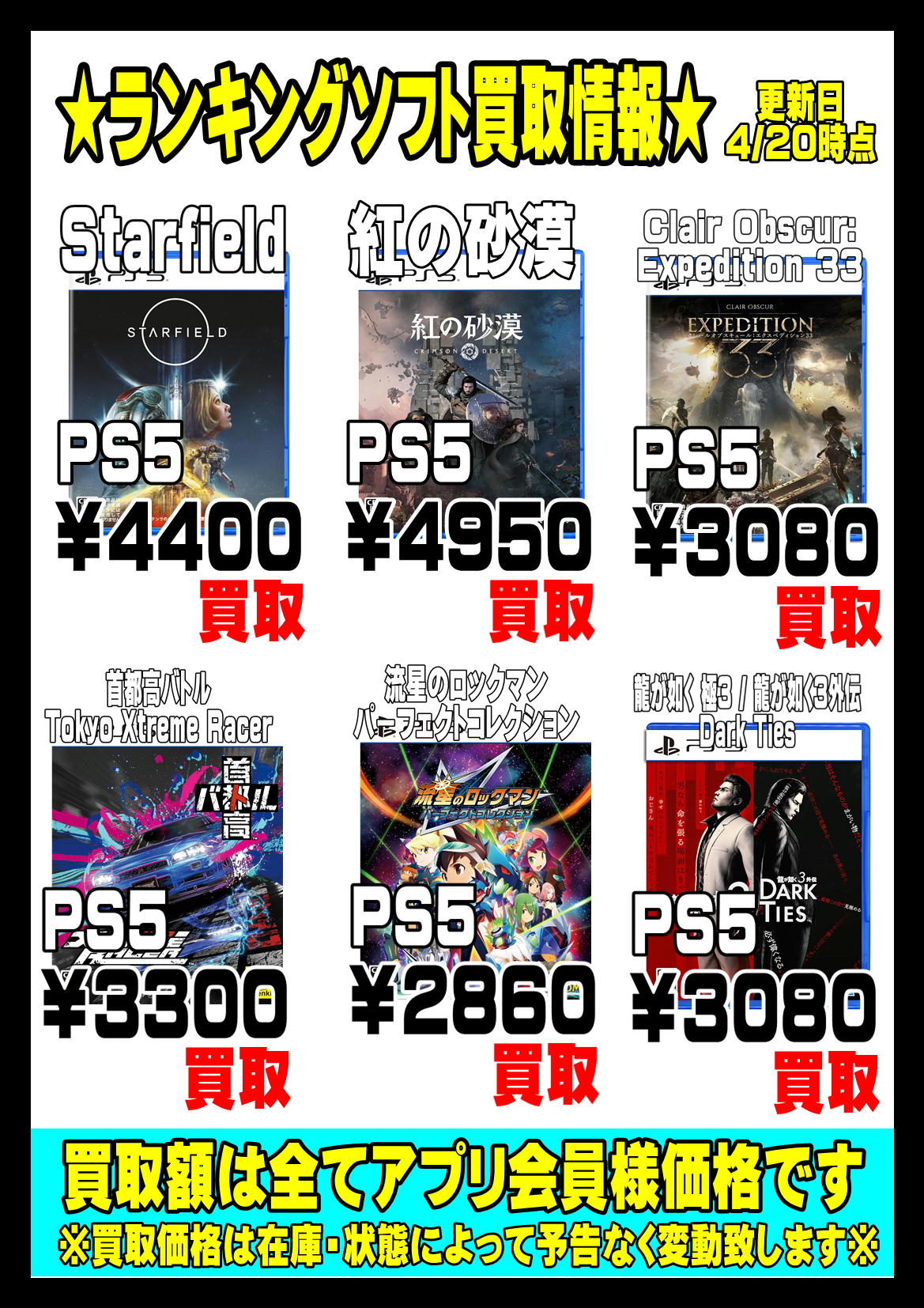 ※在庫、相場によって買取価格は予告なく変動します。最新の価格は買取所でご確認ください。