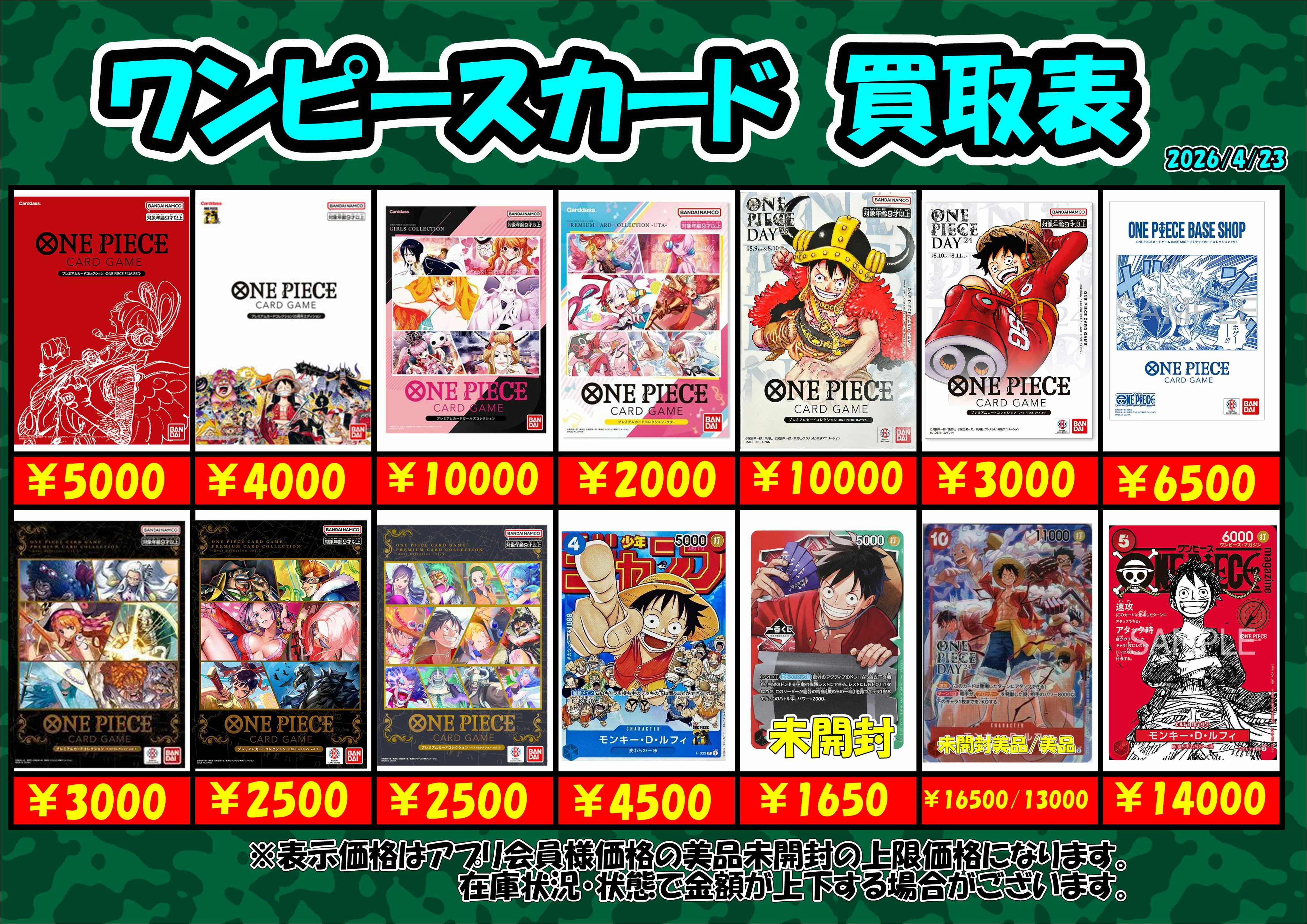 未開封・美品・シュリンク付きの店頭・アプリ会員様の買取価格を表示しております。 在庫により予告なく金額が上下する場合と買取上限や、お振込対応になる場合がございます。予めご了承ください。