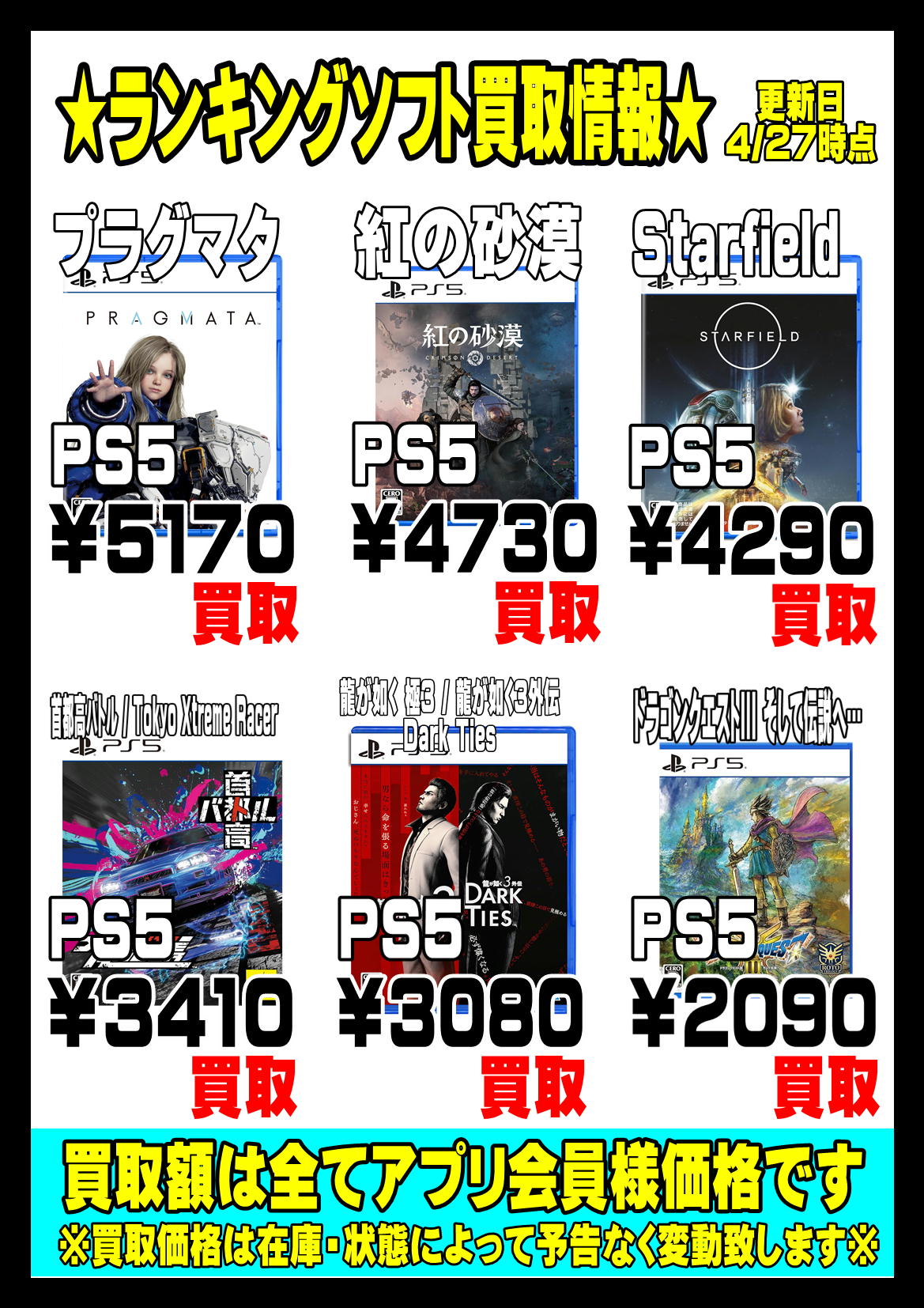 ★週間ゲームソフトランキングPS5強化買取情報!!!!!★4/27現在