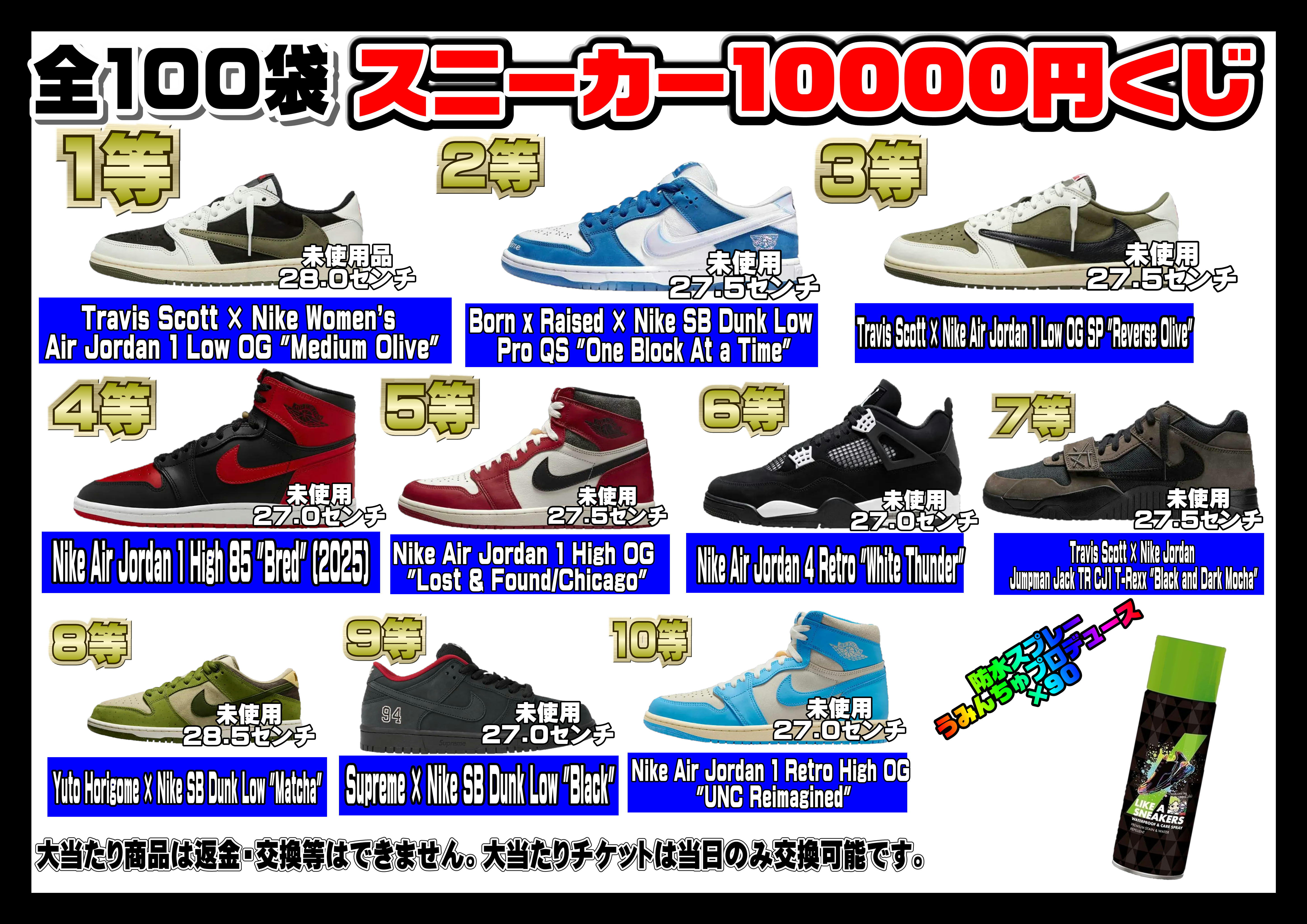 スニーカーくじ稼働します! 12/24から1口10,000円全100口で 稼働してます クリスマスイブに欲しいスニーカーGETしましょう!