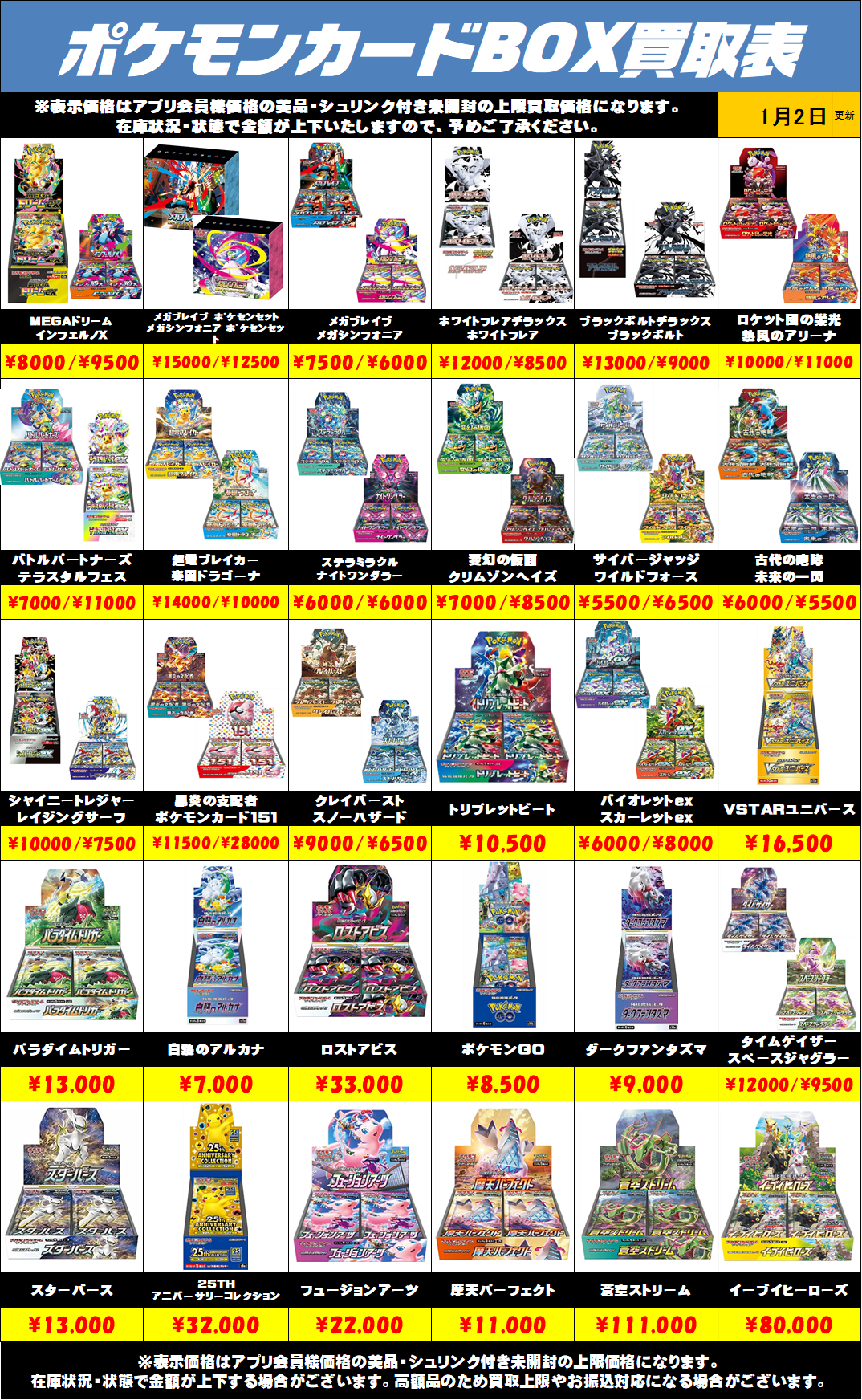 ポケモンカードBOX買取リストを更新しました!1/2~