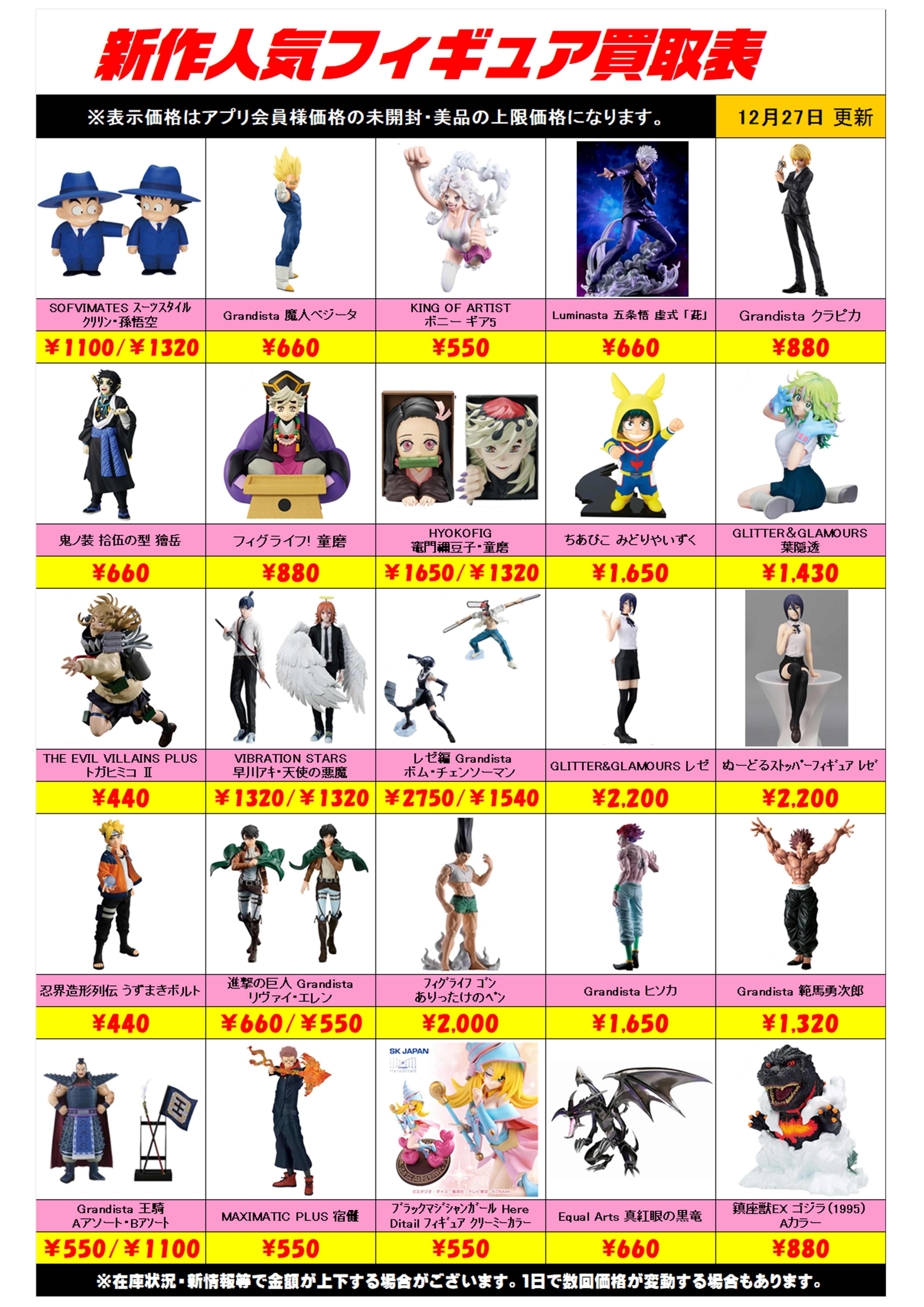新作プライズフィギュア買取リスト更新しました! 12/27~ プラスアップキャンペーンも実施中です!