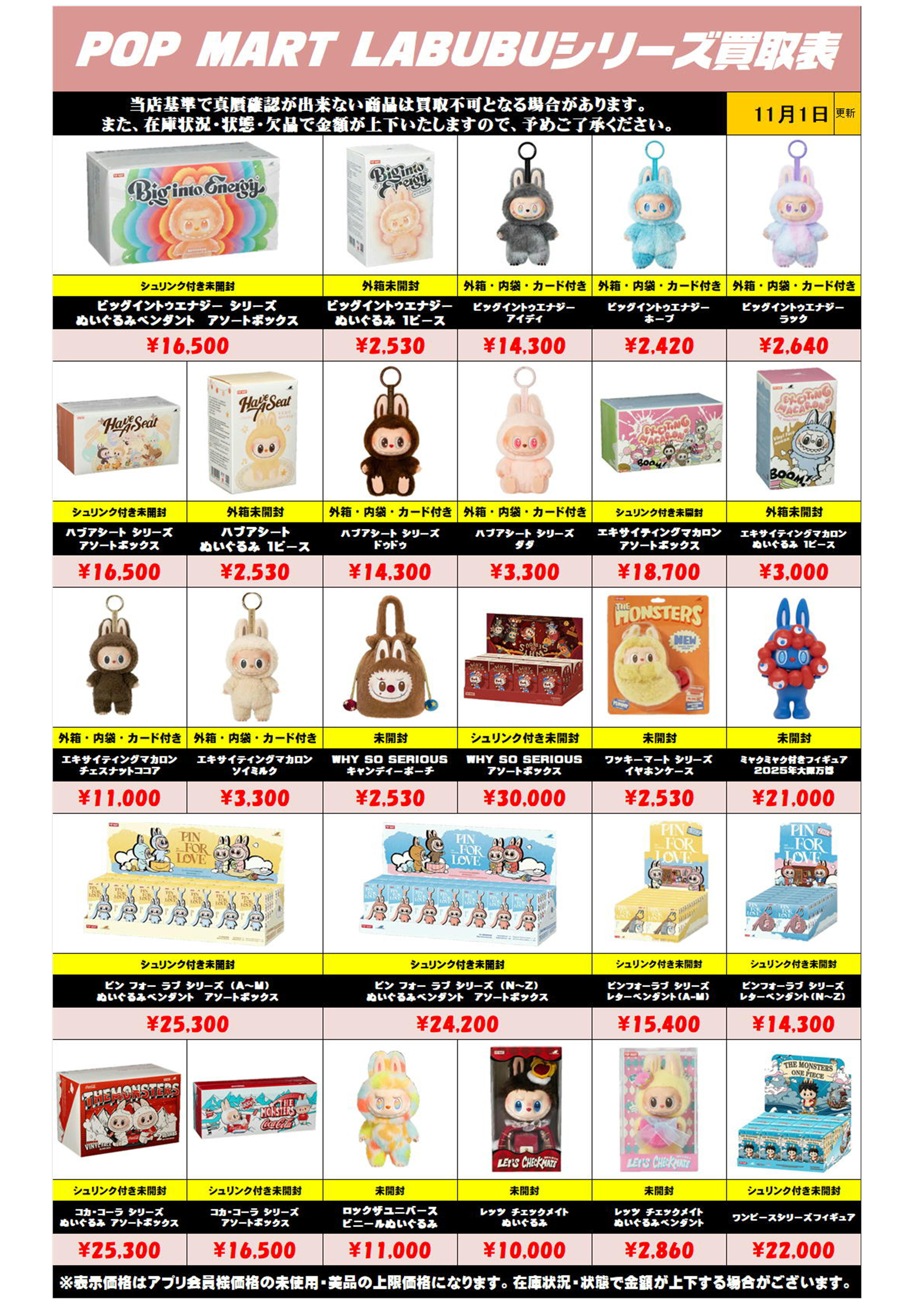 ポップマート ラブブシリーズも超高額買取実施中です! 11/1~