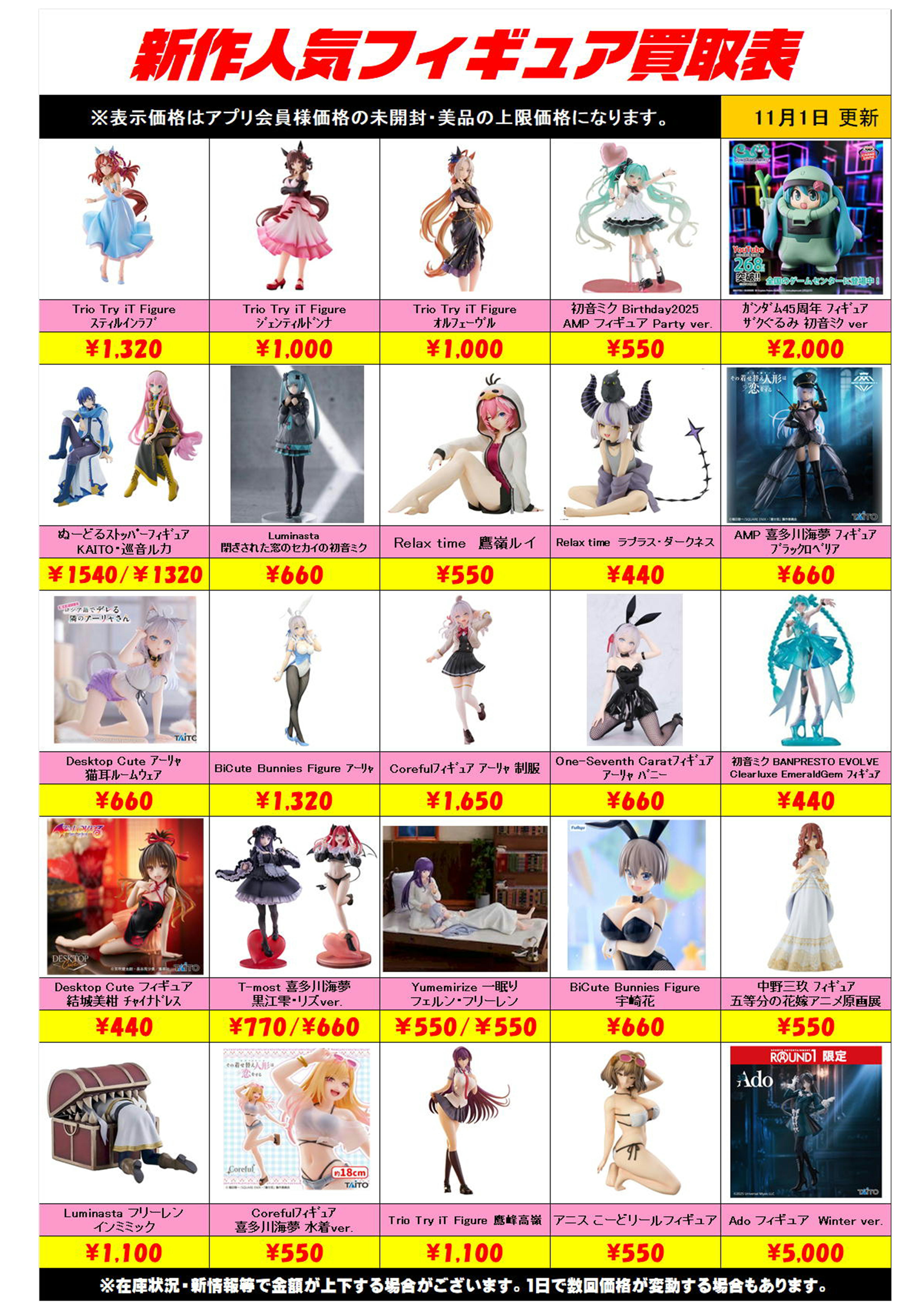 新作プライズフィギュア買取リスト更新しました! 11/1~ プラスアップキャンペーンも実施中です!