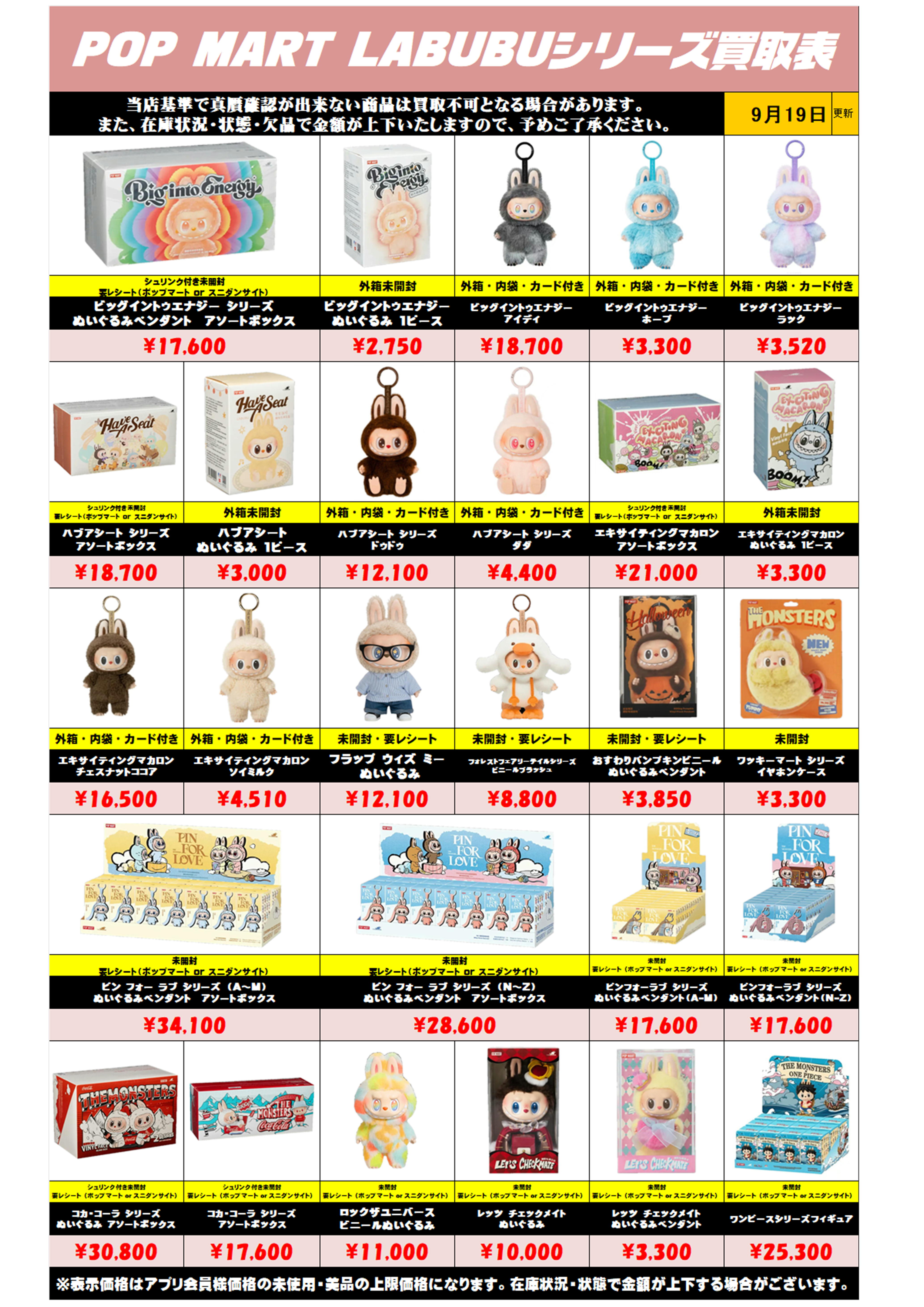 ポップマート ラブブシリーズも超高額買取実施中です! 9/19~