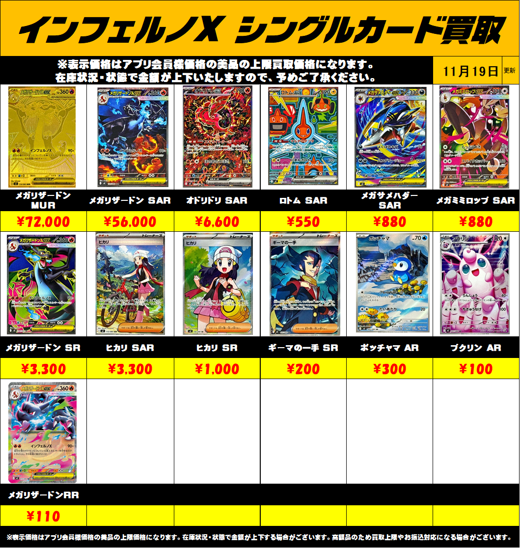 ポケモン新弾インフェルノX シングルカード 買取リスト更新しました! 11/19~