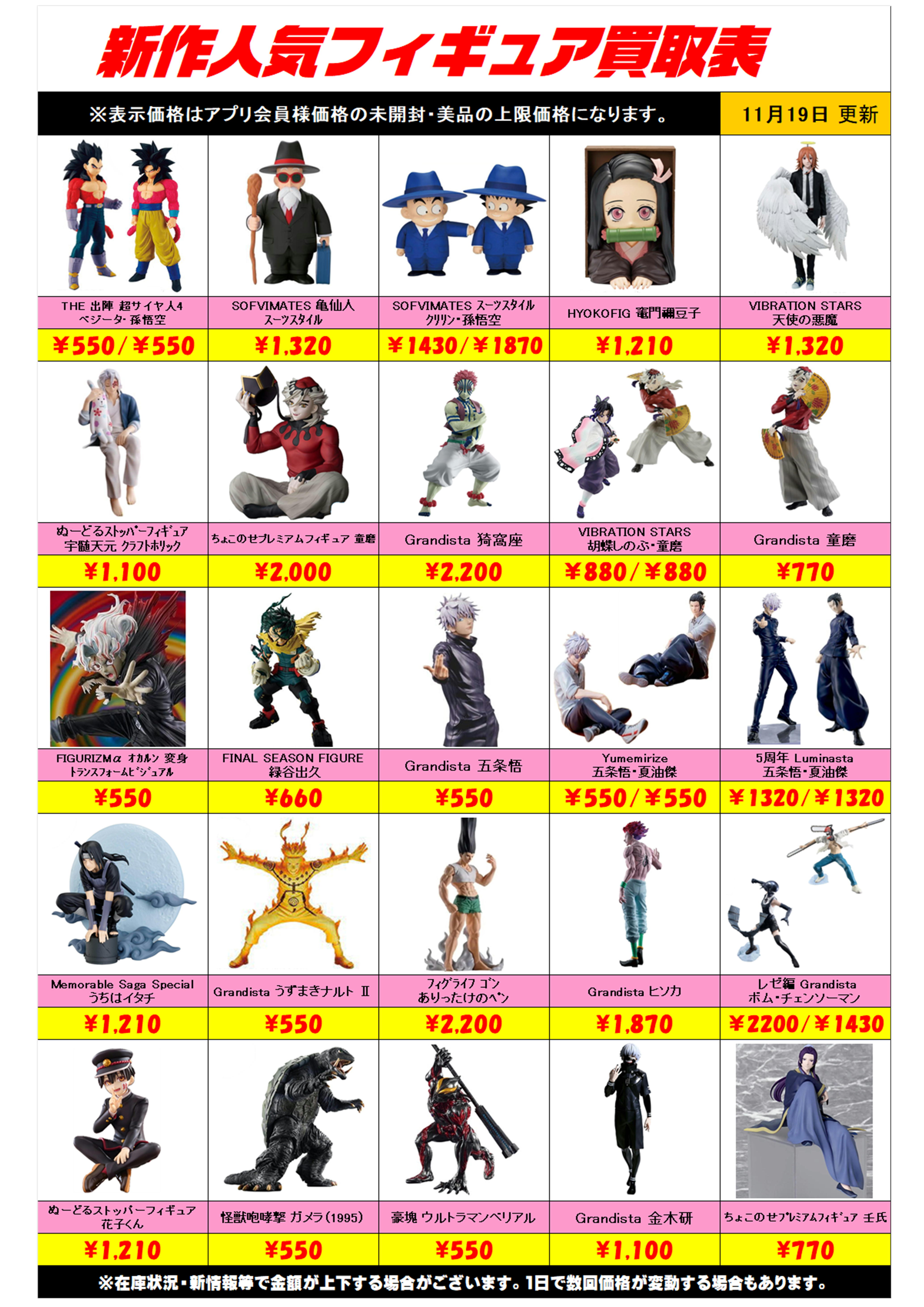 新作プライズフィギュア買取リスト更新しました! 11/19~ プラスアップキャンペーンも実施中です!