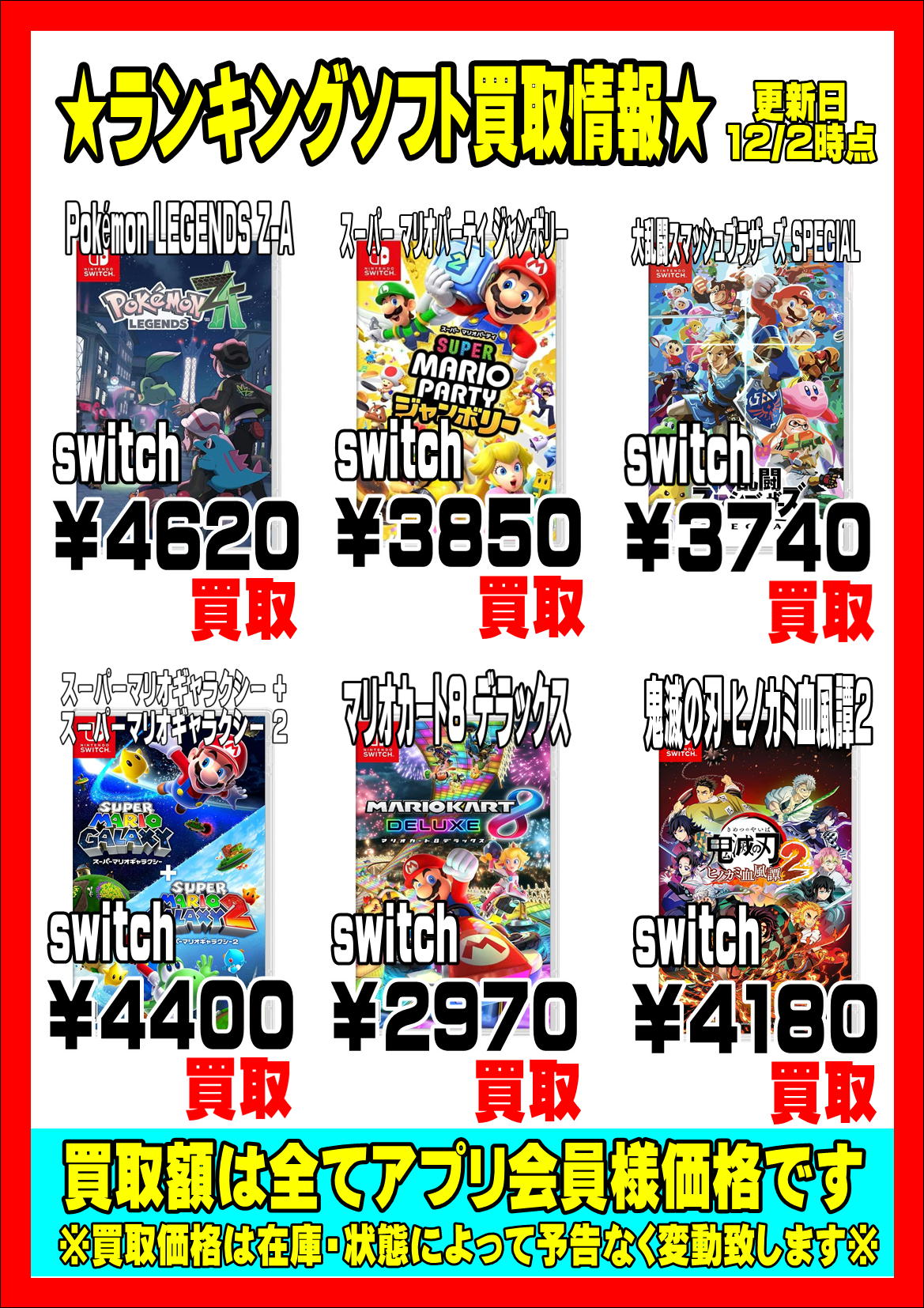 ★週間ゲームソフトランキングNSW強化買取情報!!!!!★12/2現在