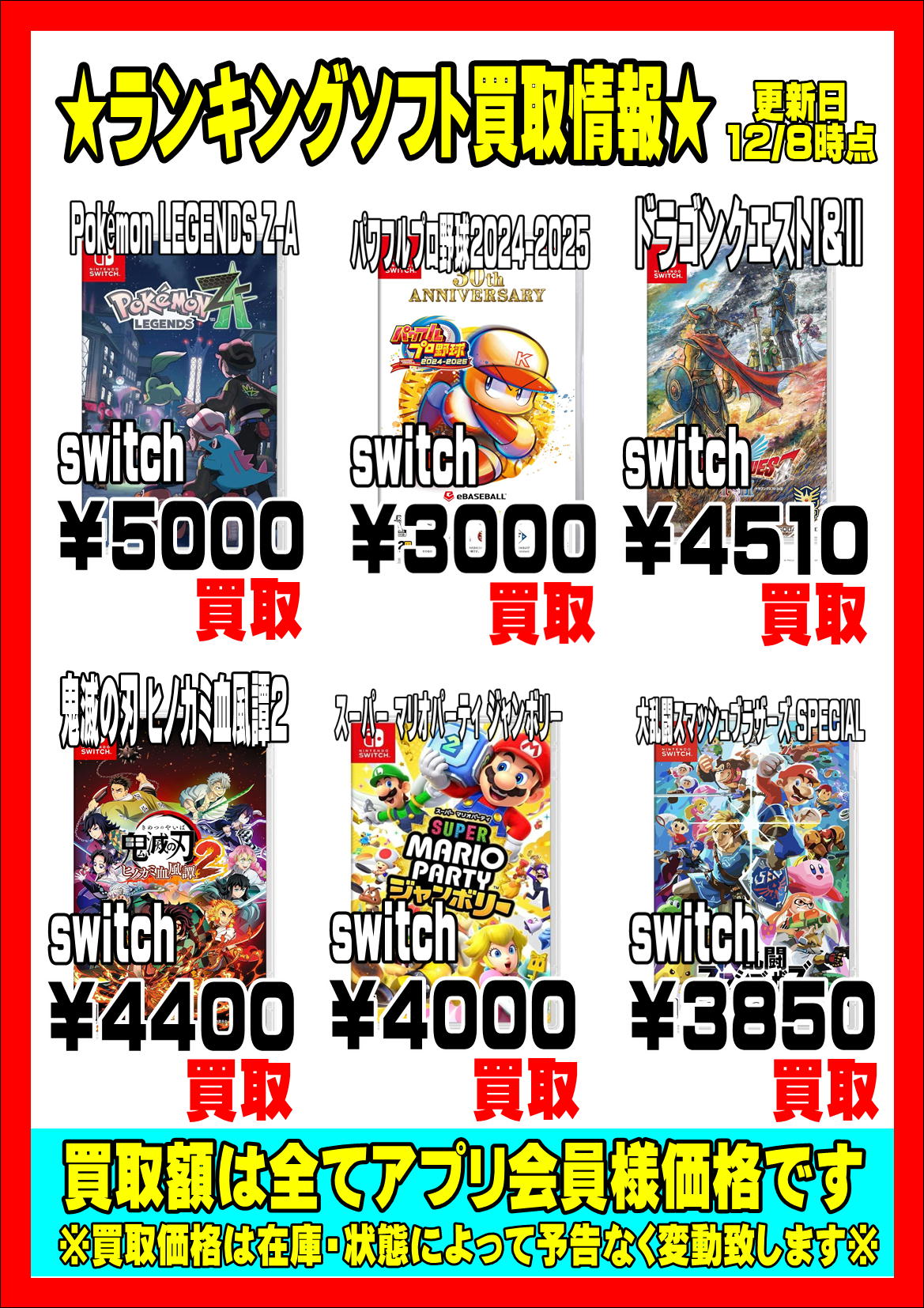 ★週間ゲームソフトランキングNSW強化買取情報!!!!!★12/8現在