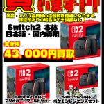 Nintendo Switch 2 日本語・国内専用 ¥43,000買取 Nintendo Switch 2 マリオカートワールドセット ¥50,000買取 Nintendo Switch 2 ポケモ …