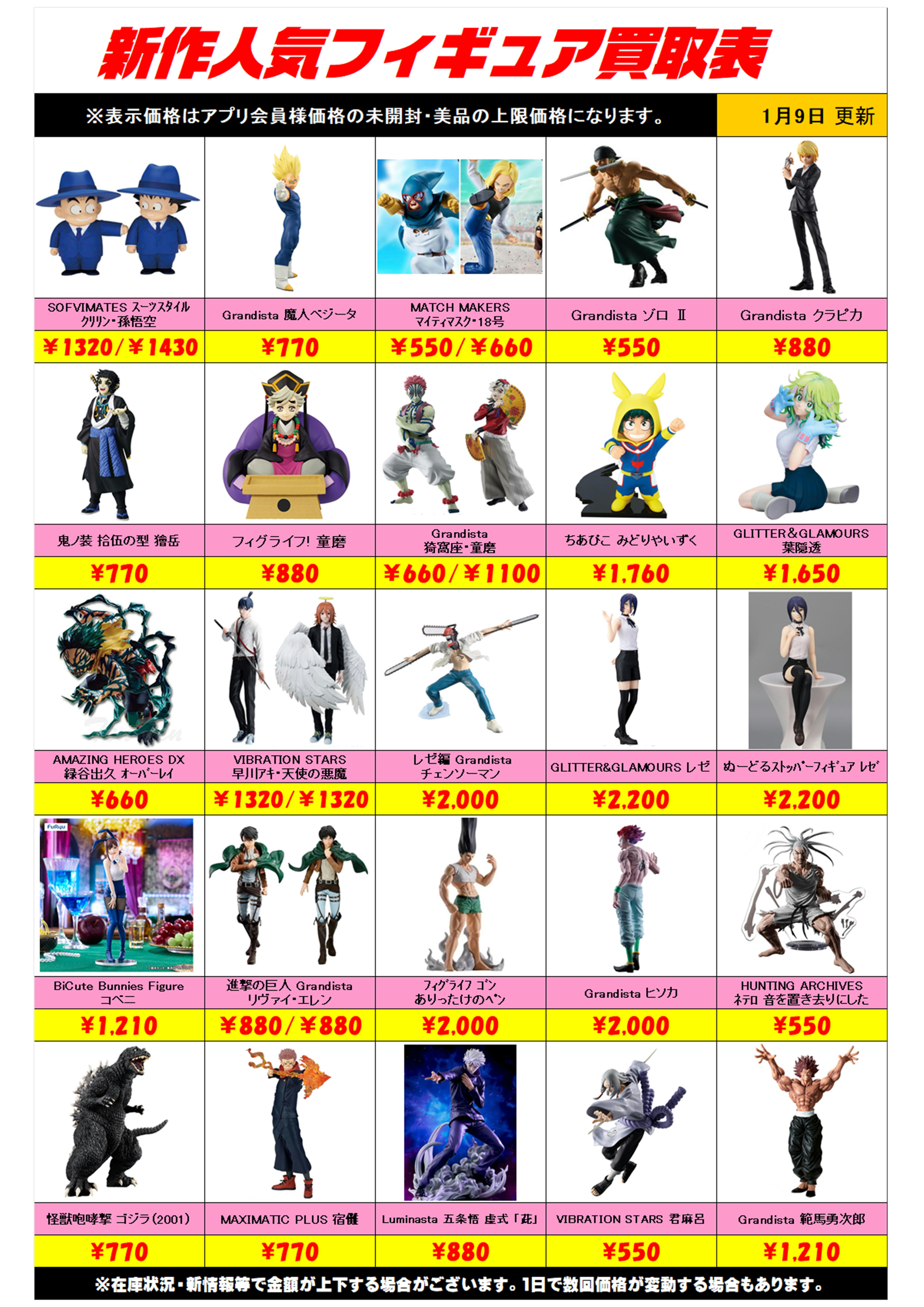 新作プライズフィギュア買取リスト更新しました! 1/9~ プラスアップキャンペーンも実施中です!